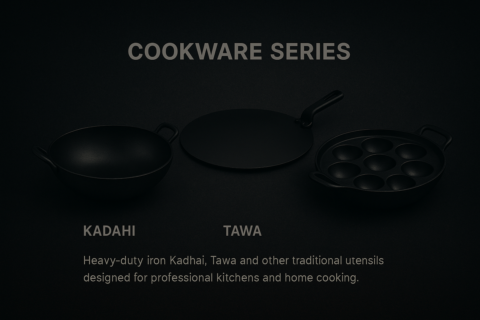 Our Cookware Series includes heavy-duty iron Kadhai, Tawa, and other traditional utensils designed for professional kitchens and home cooking. Crafted from premium-grade iron, these products are known for their heat retention, durability, and authentic cooking experience.